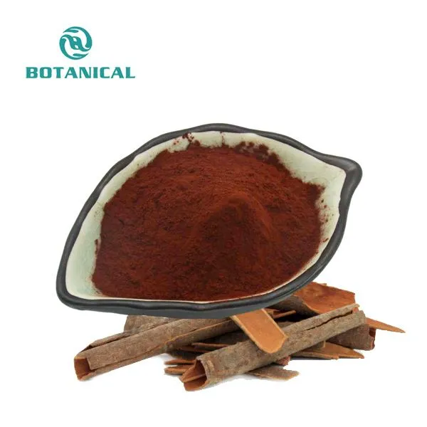 Aðalútdráttarhlutinn af grasafræðilegum teningumDalchini þykkni dufter innra lag kanilbörkur, þar sem þessi hluti er ríkur af gagnleg innihaldsefni eins og ilmefni og virk efnasambönd. Varan okkar er í formi fínu dufts með hreinum kanil ilm. Liturinn á duftinu er brúngult til brúnrautt. Áferðin er fín og auðvelt að leysa upp í vökva, sem gerir það auðvelt að bæta við ýmsar vörur.